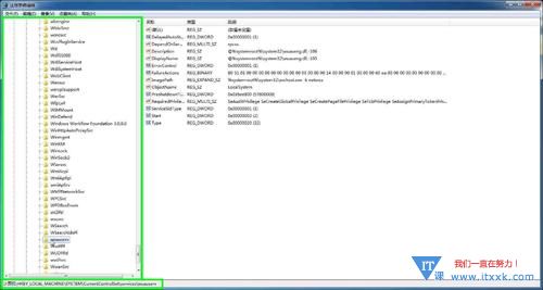 - 上图中我们可以看到注册表编辑器的左下方会记录当前键值的路径,以wuauserv为例,其路径是计算机\HKEY_LOCAL_MACHINE\SYSTEM\CurrentControlSet\services\wuauserv